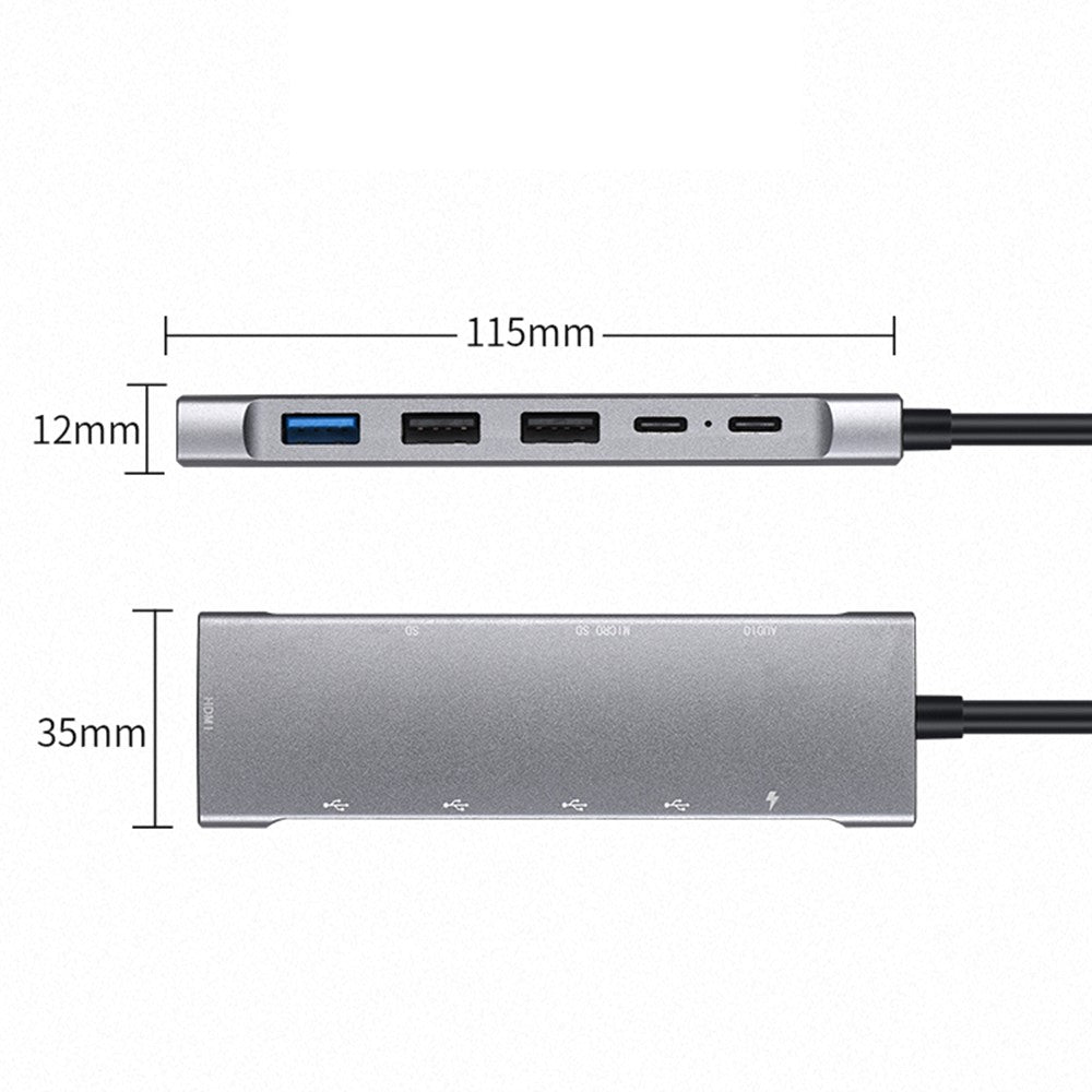 9 ports Multifunction USB C Hub: 1 * PD, 1 * USB C, 1 * USB 3.0, 2 * USB 2.0, 1 * HDMI, 1 * SD, 1 * TF, 1 * Headphone Jack