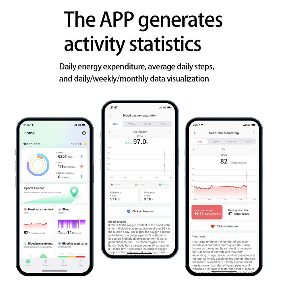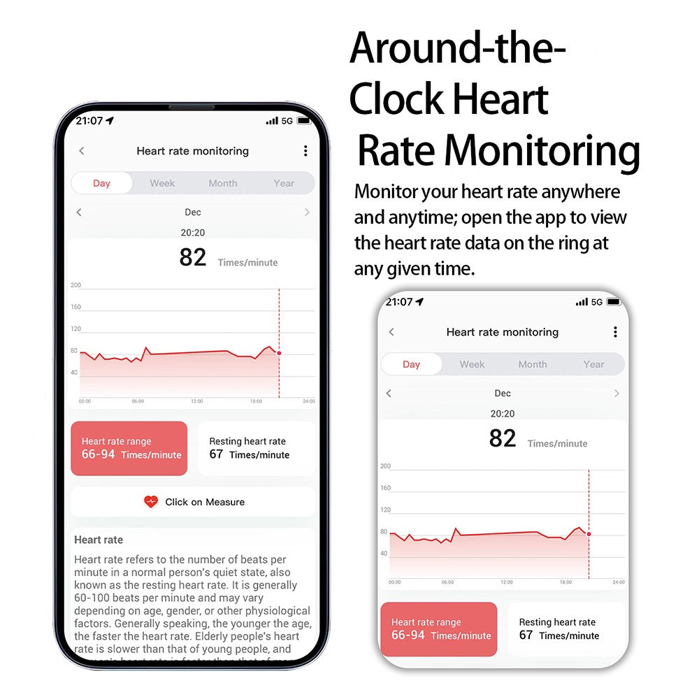 - [Rate Rate Monitoring] Monitor your heart rate anywhere and anytime; open the app to view the heart rate data on the ring at any given time